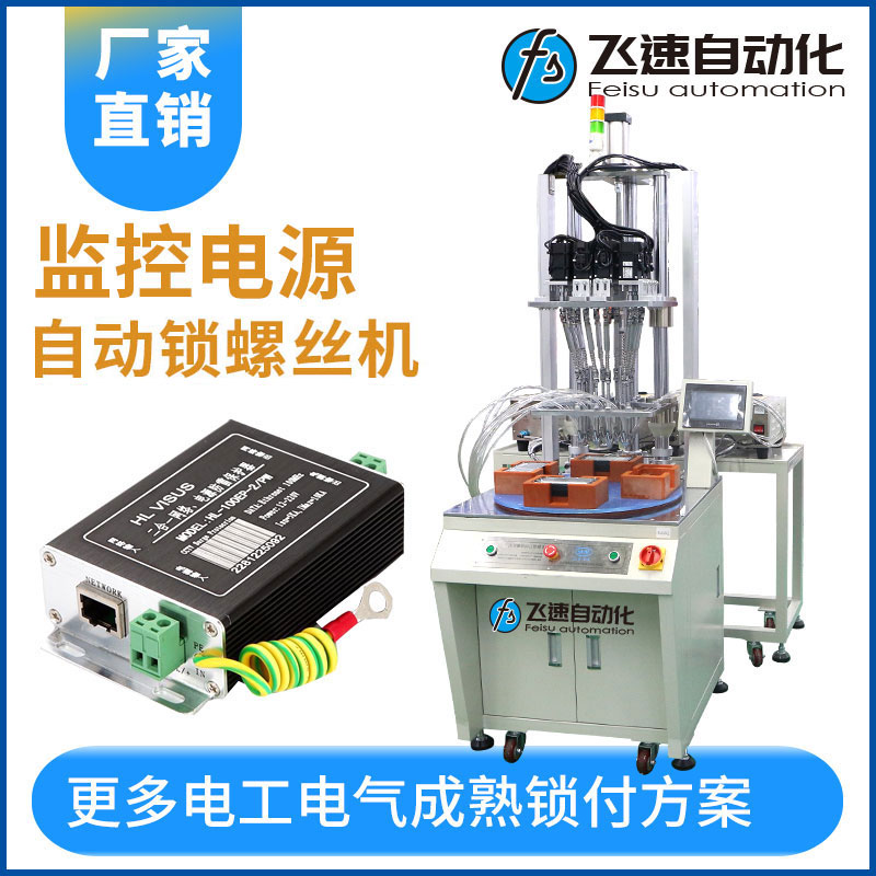 控制電源向電子設(shè)備提供功率的裝置,其電源功率的大小,電流和電壓是否穩(wěn)定,將直接影響計(jì)算機(jī)的工作性能和使用壽命。 在組裝生產(chǎn)需要螺絲將產(chǎn)品進(jìn)行緊固,但是在工人手操作效率低,效果差,勞務(wù)成本高。因此,針對(duì)傳統(tǒng)的加工處理流水線存在技術(shù)問題的不足 飛速自動(dòng)化為解決上述問題為廠家設(shè)計(jì)了一臺(tái)多工位多軸式自動(dòng)鎖螺絲機(jī),工作臺(tái)上設(shè)立了多個(gè)工位多把電批同時(shí)運(yùn)轉(zhuǎn)鎖付,通過送螺絲機(jī)構(gòu)進(jìn)行螺絲的輸送,上下運(yùn)動(dòng)裝置接觸螺絲,然后通過鎖螺絲機(jī)構(gòu)對(duì)產(chǎn)品進(jìn)行鎖螺絲作業(yè),大大提高了工作效率,可以實(shí)現(xiàn)快速的鎖螺絲作業(yè),特別適用于批量作業(yè),同時(shí)通過電機(jī)的扭力控制,避免了螺絲欠品和浮鎖現(xiàn)象,保證產(chǎn)品質(zhì)量,省時(shí)省力,節(jié)約生產(chǎn)工時(shí),降低企業(yè)的生產(chǎn)成本。