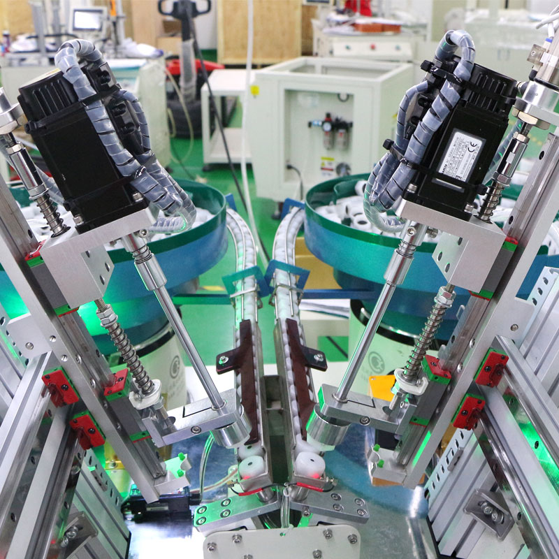 飛速自動化廠家按照客戶要求根據產品進行設計一臺加油泵全自動組裝螺母螺帽機,能夠替代人工放置運輸帽緊固,可以達到提升組裝運輸帽工作效率的自動化上送膠蓋設備。產品為加油泵運輸帽,每個產品需按照兩個膠蓋,設備要實現兩顆螺帽安裝至產品上,并且能夠一步到位精確度高,為此將設備設計為傾斜自動鎖付平臺,這樣比較方便產品安裝螺帽工序,再設備兩側設立兩臺振動盤自動送螺帽,然后將無序工件自動有序定向排列整齊、準確地輸送到下道工序將膠蓋吸附至工件上進行相同的扭力矩旋轉安裝,工作時,整個安裝螺母螺帽工作過程人工只需將工業產品的待安裝的工件放在再設定固定的工位上,設備就能自動完成后續的組裝螺帽過程。設備設計巧妙、結構合理。設有自動安裝螺帽程序,自動輸送螺帽由振動盤裝置供料,振動盤能夠講螺帽自動排列 送至安裝接口上,全自動組裝機替代了以往需人工放置緊固件的工序部分,減少了工作強度,降低對人工技能的熟練程度的依賴,節約了時間,達到提升安裝螺母螺帽工作效率目的。