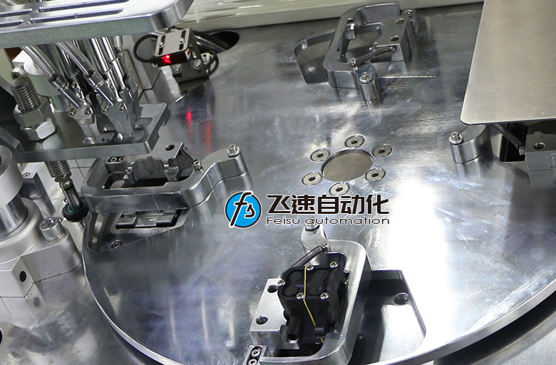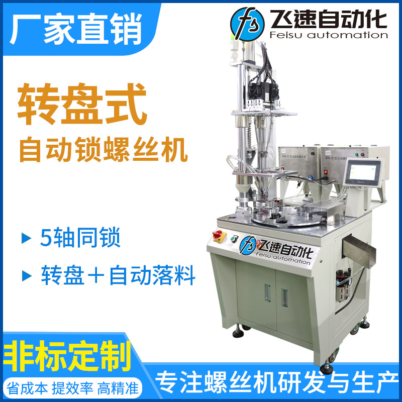 - 產品簡介: 本案例采用轉盤自動落料式螺絲機,產品上有5顆螺絲,使用5個伺服電批一次擰好所有螺絲,泵頭兩面都要鎖,鎖完一面馬上鎖另一面,四個工位同步作業,并且設備帶有自動下料功能,無需手工轉移工件,工件自動到位,自動鎖緊螺絲,自動進入下一道工序,節約了大量時間。機器配備漏鎖、浮鎖、滑牙等鎖付不良檢測及報警功能。